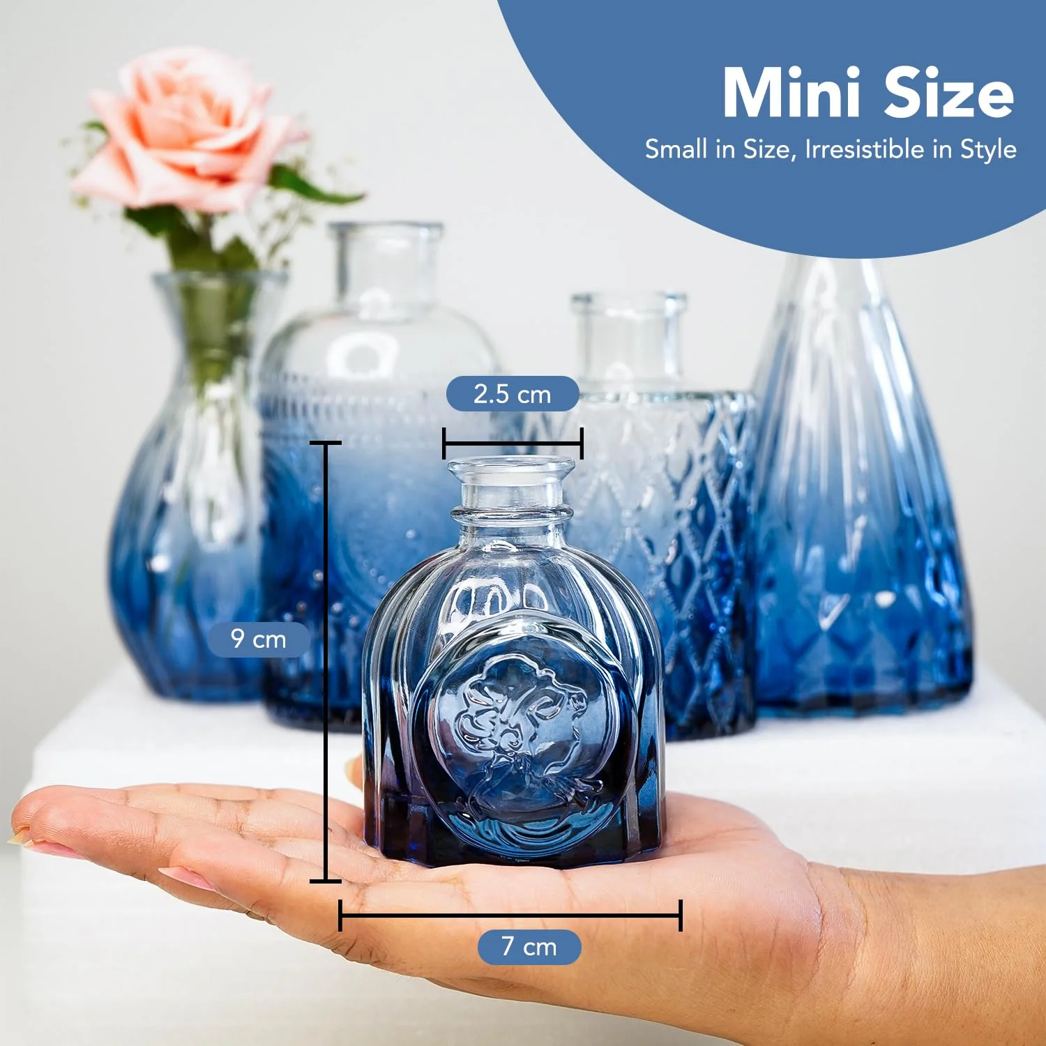 Ekhasa 100% Crystal Blue Glass Bud Vases Flower Pots for Home Decoration (Set of 5) | Center Table Mini Decorative Items | Transparent Glass Vase for Water Plants | Glass Planters for Indoor Plants—