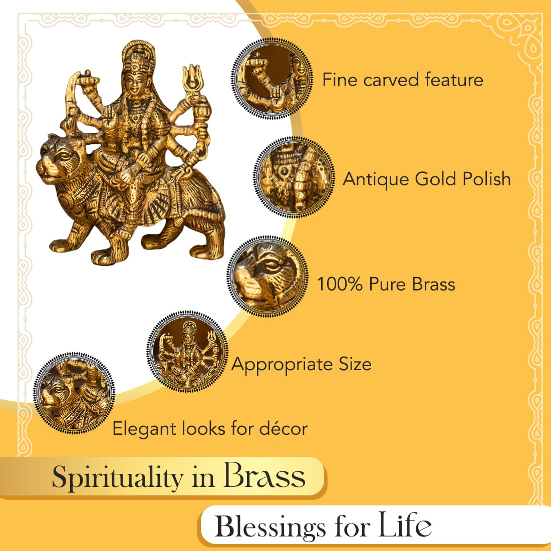 PERFECT FOR HOME DECOR, PUJA ROOM, OFFICE DESK: This Durga Mata murti, crafted from 100% solid brass, serves as an ideal addition to home decor and finds its place in the puja room. The Mata Rani Murti, when placed on your office desk, bestows blessings upon you.