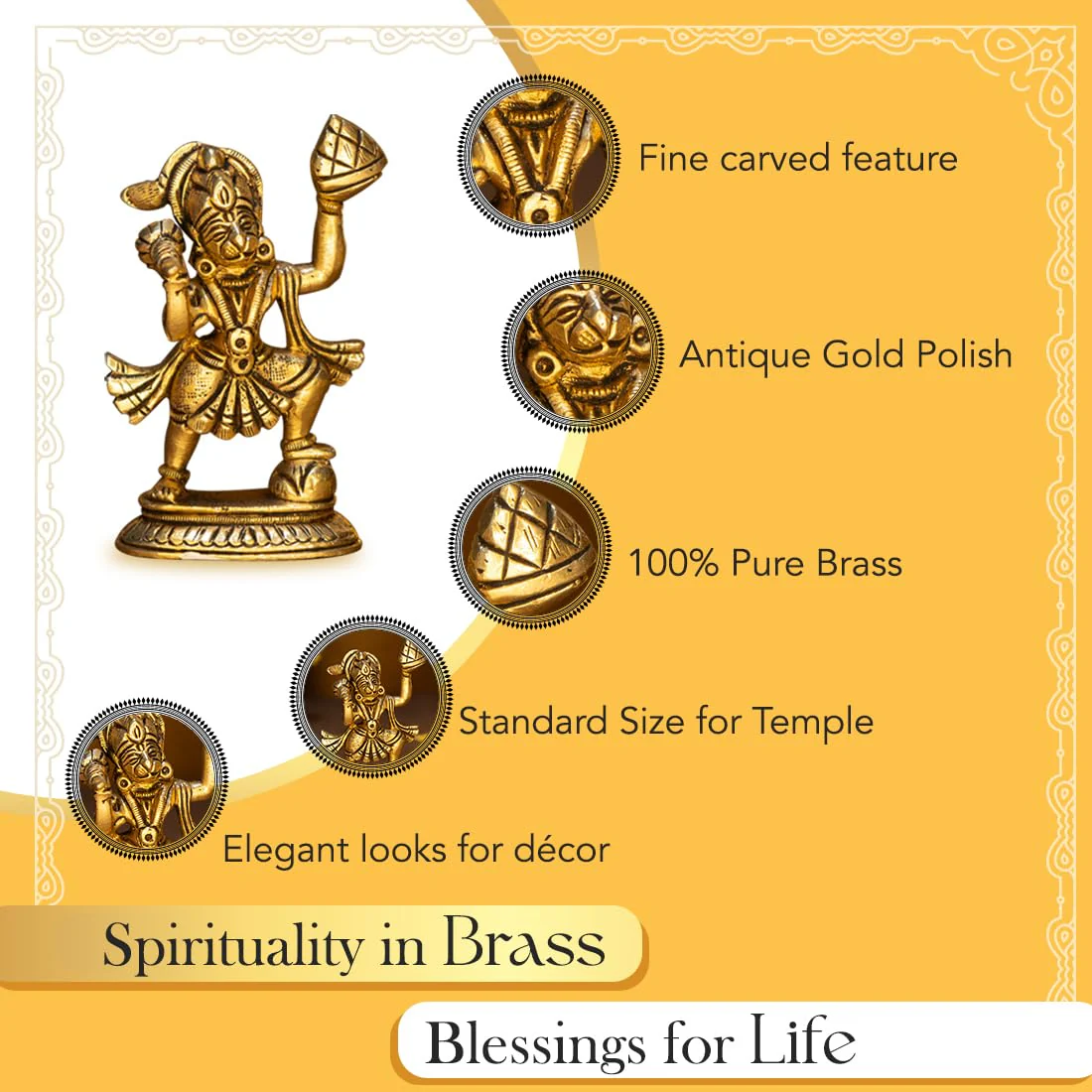 Ekhasa 100% Pure Brass Hanuman Ji Murti for Home Puja (Size: 8.4 cm) | Lord Hanuman Idol for Desk, Car and Home Decor | Balaji Idol | Bajrangbali Murti | Bahubali Hanuman Idol