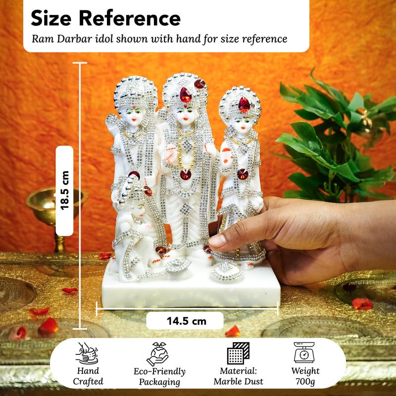 - SPIRITUAL SYMBOLISM: The Ram Darbar murti signifies family unity and serves as a reminder of friendship and spiritual fulfillment.