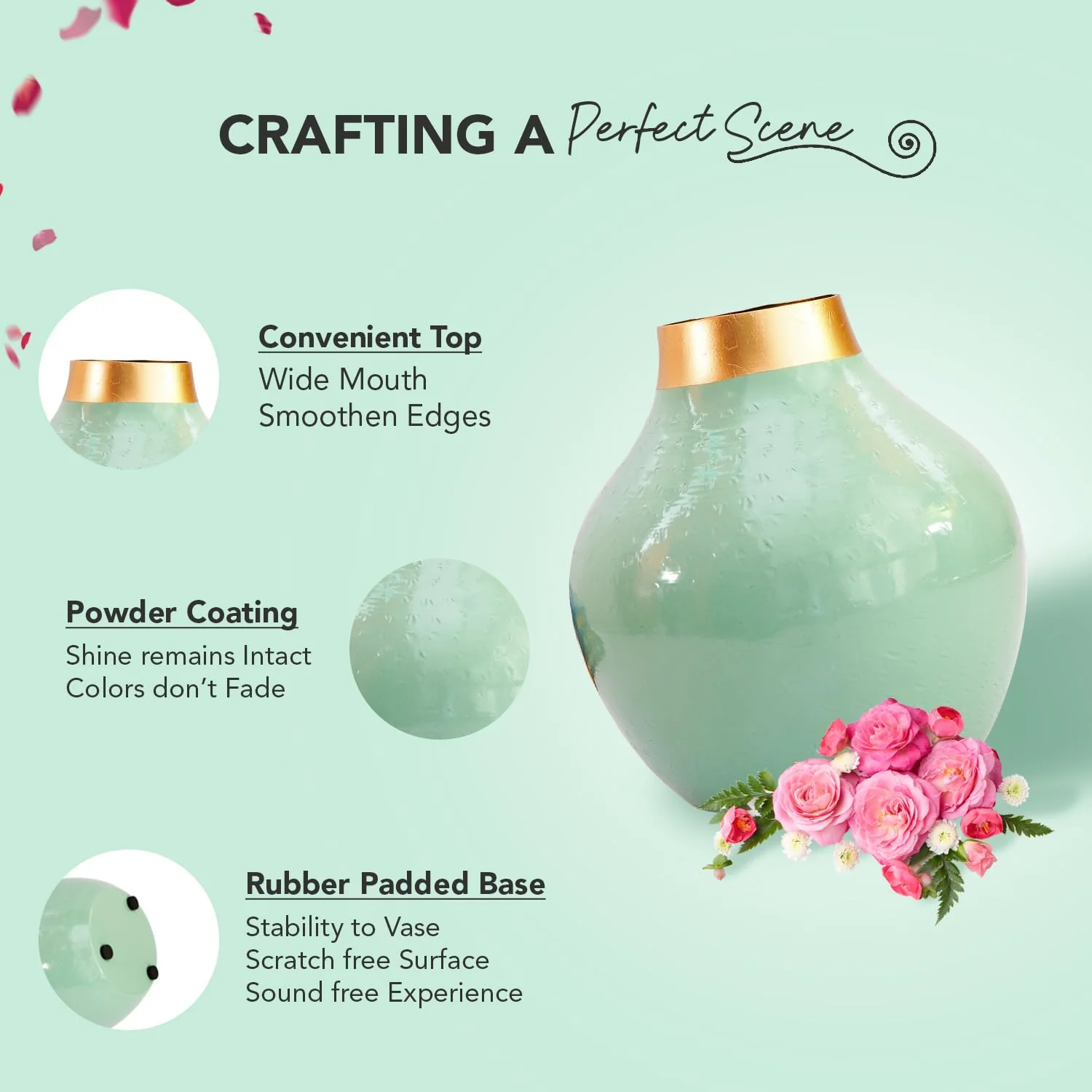 VERSATILE ELEGANCE : Our metal vase is perfect for home decor, offices, living rooms, and even as a thoughtful gift. Crafted from high-quality materials with impeccable hand-painted finishing, it's a stunning addition that elevates any space with style and sophistication.