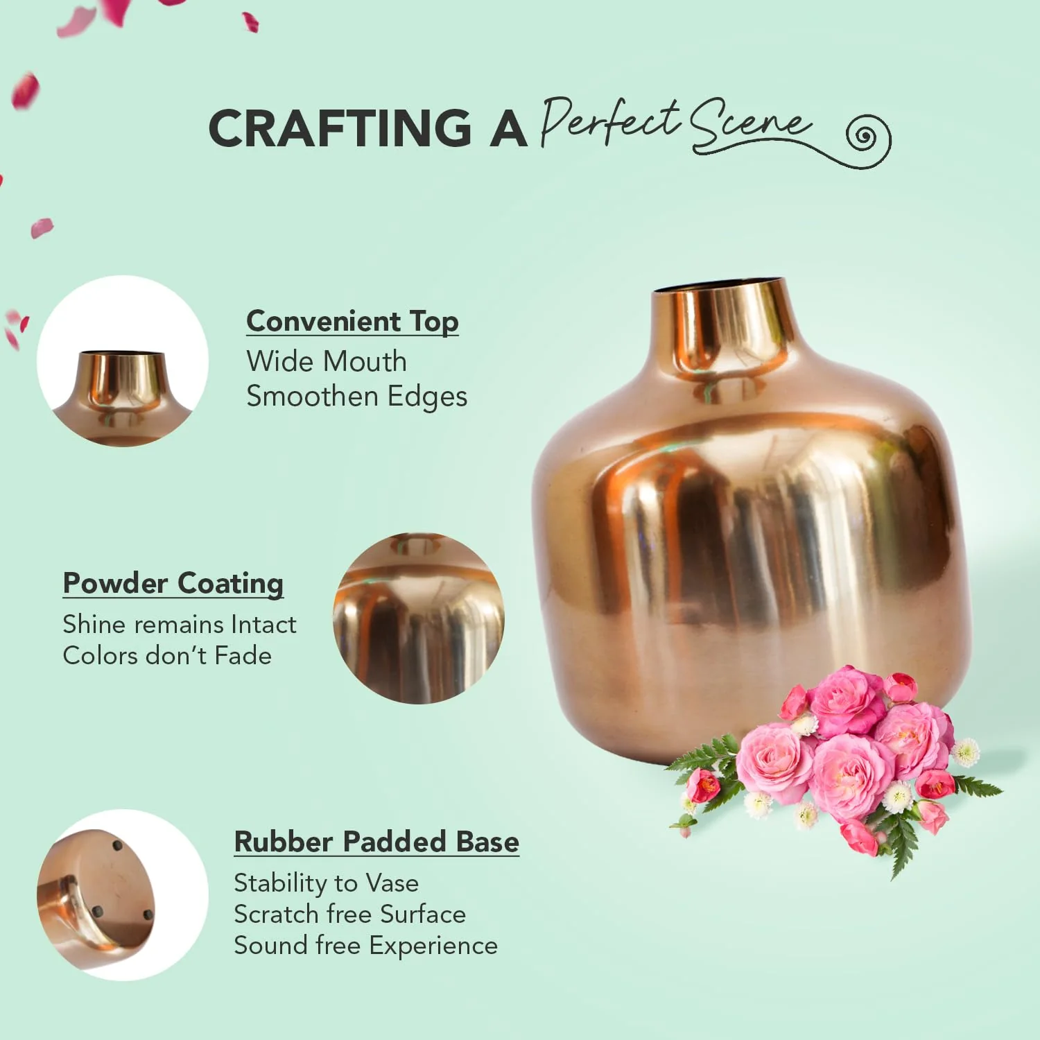 Ekhasa Unbreakable Metallic Copper Flower Vase for Home Decor | Aesthetic Flower Vase Gift for Wedding, Housewarming, Parties, Gatherings | Decorative Metal Vase for Living Room, Dining Table, Office