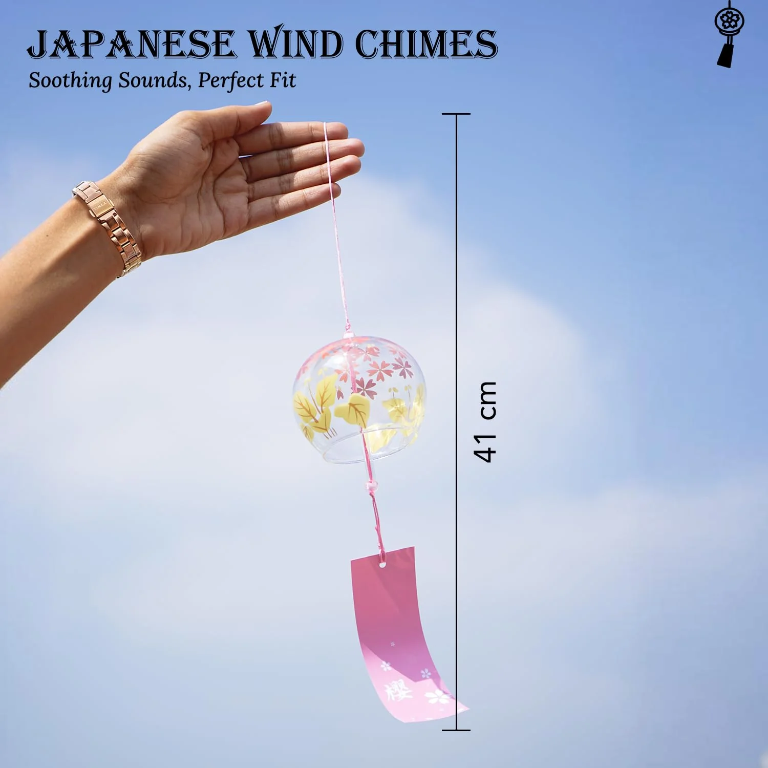 Japanese Wind Chimes: Elegant Glass Bell with Sakura Design | Outdoor/Indoor Use | Multicolour